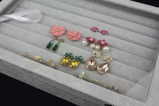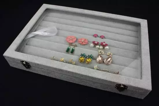 Panou catifea gri pentru prezentare inele, cercei, bratari sau coliere