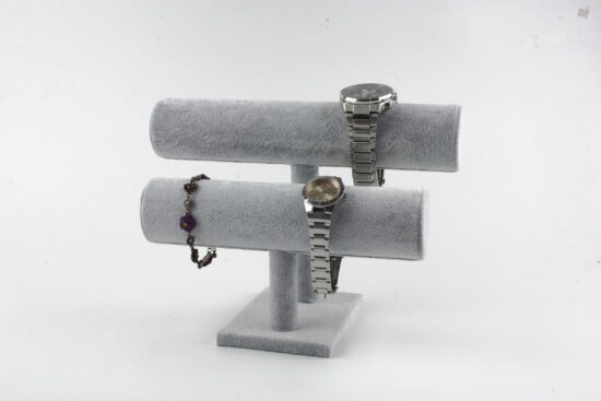 Suport catifea gri pentru bratari/ceasuri 14×22,5cm