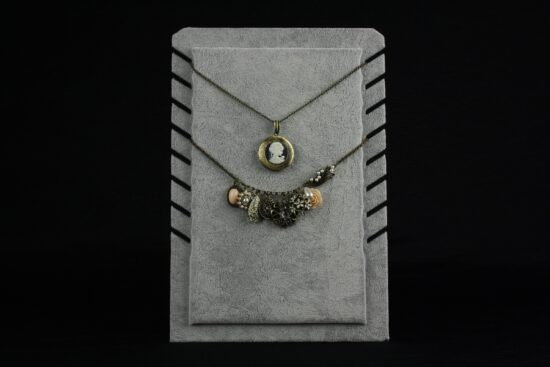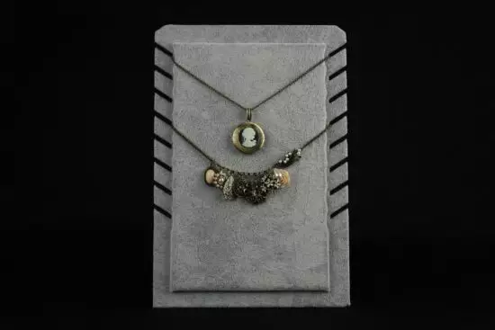 Suport catifea gri pentru prezentare bratari si coliere tip rama 26x32x10cm